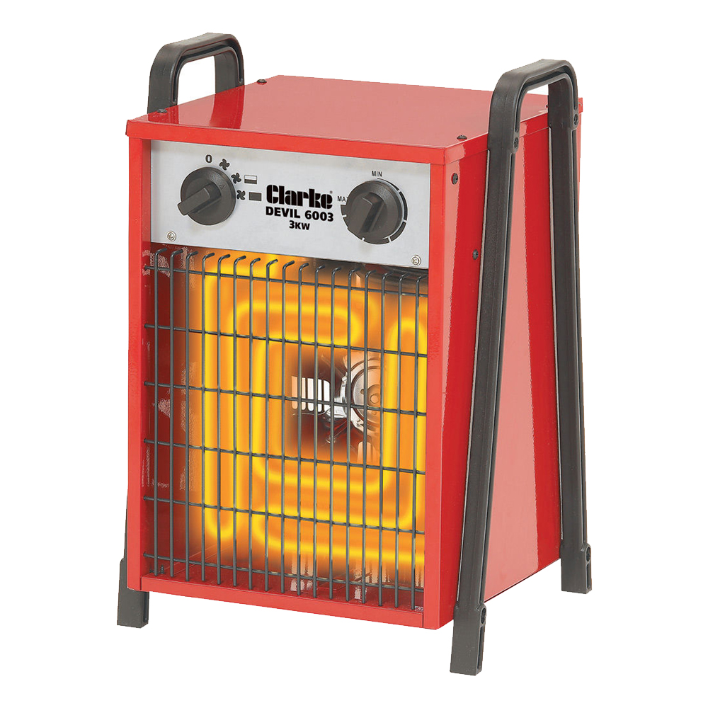 Suitable for use in both commercial & home workshops, garages & shops. The Devil 6003 is housed in a robust steel cabinet and has variable heat output, with thermostatic control, to achieve desired room temperature.